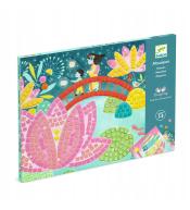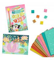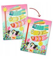 Zestaw zawiera 2 grafiki w japońskim stylu. Niektóre kwadraciki do wyklejania są pokryte brokatem, co nadaje dodatkowego kunsztu obrazkom. Każdy arkusz z naklejkami jest oznaczony cyferką, aby ułatwić zadanie. Na obrazku wszystkie kwadraciki są odpowiednio ponumerowane. Dzieci wybierają np. arkusz z naklejkami nr 1 i wyklejają nim wszystkie ponumerowane pola z jedynką. Robienie mozaik to doskonały trening motoryki małej. Wyklejanie ćwiczy koncentrację i skupienie.
