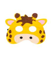 Lekka maska karnawałowa z filcu w kształcie żyrafy. Rozmiar ok. 18×14 cm, elastyczna gumka, idealna do przedszkola, przedstawień i bali przebierańców.