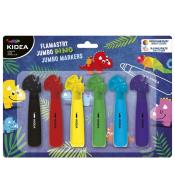 Zestaw 24 flamastrów w rozmiarze jumbo z owalną końcówką w intensywnych kolorach. Bardzo dobrze kryją większe powierzchnie, mają wytrzymałą końcówkę oraz posiadają ergonomiczny kształt, dzięki czemu idealnie pasują do rączki dziecka. Idealnie mieszczą się w piórniku i nie zajmują dużo miejsca. Dodatkowo opakowanie flamastrów posiada kreatywną kolorowankę, która edukuje dzieci, ucząc tych najważniejszych, magicznych słów.