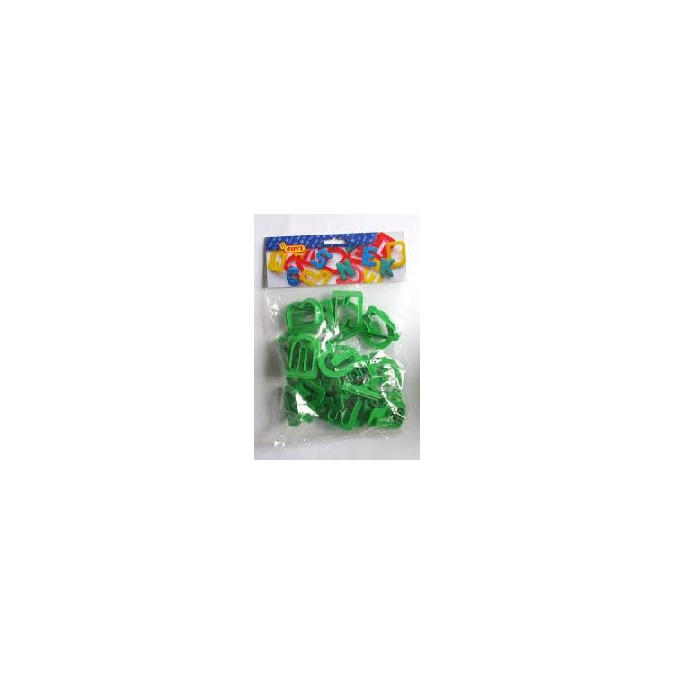 Akcesoria do modelowania plasteliny - literki. Dzieci mogą uzyskać najlepsze efekty podczas zabawy używając akcesoriów zaprojektowanych specjalnie do ciastoliny i plasteliny. Z pomocą szerokiej gamy szpatułek, foremek,literek i wyciskaczy różnych kształtów, dzieci mogą uformować dowolne postacie i kształty. Dostępne są również akcesoria do modelowania pasty modelarskiej JOVI.