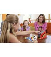 UNO Extreme! umożliwia rozgrywkę na kilka sposobów - możesz użyć samych kart i zagrać w klasyczną wersję "UNO" lub skorzystać z dołączonego do zestawu urządzenia, które z pewnością podkręci emocje graczy. Wyrzutnia do kart wprowadzi do gry odrobinę napięcia i mnóstwo wrażeń oraz i zapewni jeszcze więcej frajdy. Mechanizm wyrzutni należy uruchomić w momencie, gdy pojawi się karta "Extreme", ale nigdy nie wiadomo, ile kart wystrzeli w powietrze po tym, jak naciśnie się guzik. Podstawowa zasada gry pozostaje niezmieniona - każdy gracz, któremu pozostanie w rękach ostatnia karta z rozdania, musi krzyknąć "Uno!".