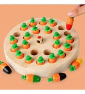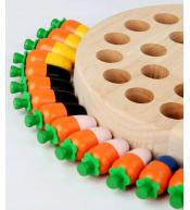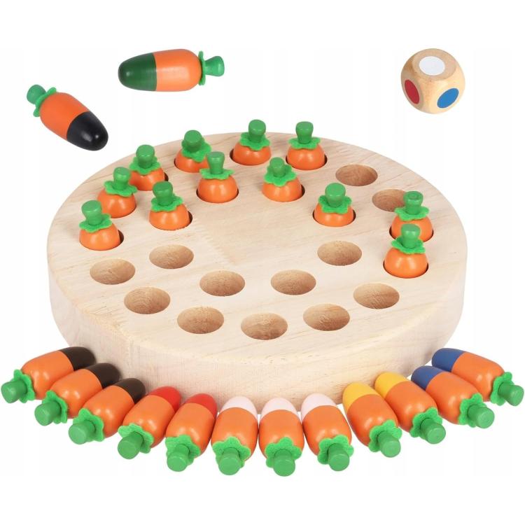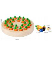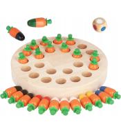Drewniana gra Marchewki – drewniane memory marki Norimpex to prosta, a jednocześnie bardzo angażująca zabawa dla dzieci i dorosłych. Zadaniem graczy jest zapamiętywanie położenia marchewek i elementów na planszy oraz ich właściwe dopasowywanie. Gra ćwiczy pamięć, koncentrację i myślenie przestrzenne, a estetyczne drewniane wykonanie sprawia, że świetnie wygląda w dziecięcym pokoju.