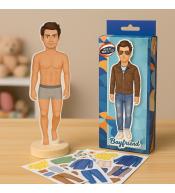 Kreatywna zabawa dla każdego małego stylisty! Zestaw zawiera magnetyczną figurkę chłopca, 27 magnetycznych elementów (ubrania, buty, akcesoria) oraz stabilną, drewnianą podstawkę.