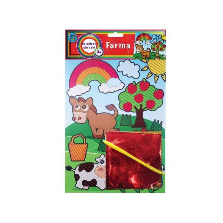 Kolorowe, błyszczące obrazki z motywem wesołych zwierzątek z farmy to idealna zabawa manualna dla dzieci! W zestawie znajduje się plansza z grafiką, 6 metalicznych folii do tworzenia efektów 3D oraz patyczek do aplikacji.