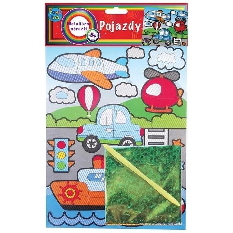 Kolorowe, błyszczące obrazki z motywem różnych pojazdów to idealna zabawa manualna dla dzieci! W zestawie znajduje się plansza z grafiką, 6 metalicznych folii do tworzenia efektów 3D oraz patyczek do aplikacji.