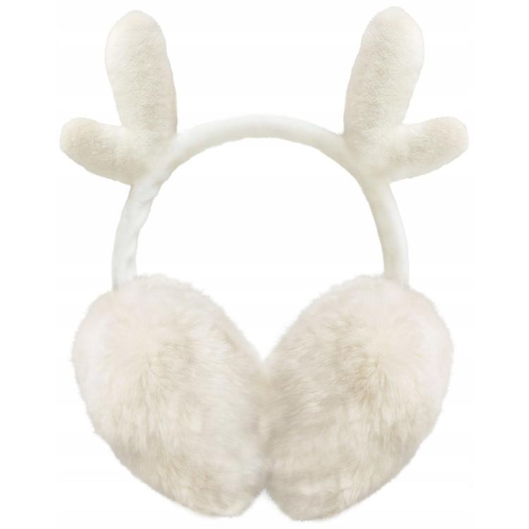 6Miękkie, futrzane nauszniki INCOOD w kolorze białym z ozdobnymi rogami. Ciepłe i wygodne na zimowe spacery oraz jako świąteczny upominek
