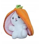 Króliczek jest wykonany z miękkiego, przyjemnego w dotyku materiału, a jego „chowający się” kształt sprawia, że wygląda jak mała kulka futerka, z której mogą wystawać uszy lub łapki – to dodaje mu charakteru i wywołuje uśmiech.