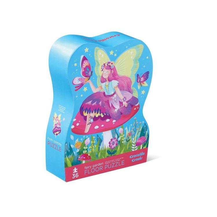 Zaczaruj pokój dziecka baśniową układanką! Crocodile Creek „Wróżki / Fairy Tale” to duże, solidne puzzle podłogowe 36 el. z barwną sceną wróżek, zamków i ogrodów.