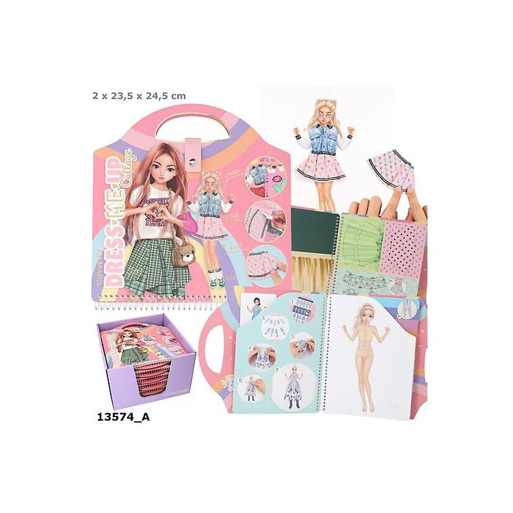 TOPModel Dress Me Up Collage Book (kod producenta: 13574 / 13574A, EAN: 4010070702410) to kreatywny zestaw dla dzieci, które kochają modę, wycinanie i naklejanie. Książeczka w formie poręcznej teczki, zapinanej na zatrzask, pozwala tworzyć własne stylizacje TOPModel krok po kroku.