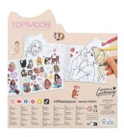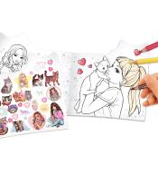 Szkicownik TOPModel Kitty z naklejkami od Depesche. W środku 24 strony z sylwetkami modelek i kotków do kolorowania oraz przykładami stylizacji, a także 2 strony z kolorowymi naklejkami z ubraniami i akcesoriami. Idealny dla dzieci, które kochają modę i koty – świetna kreatywna zabawa w projektowanie własnych stylizacji.