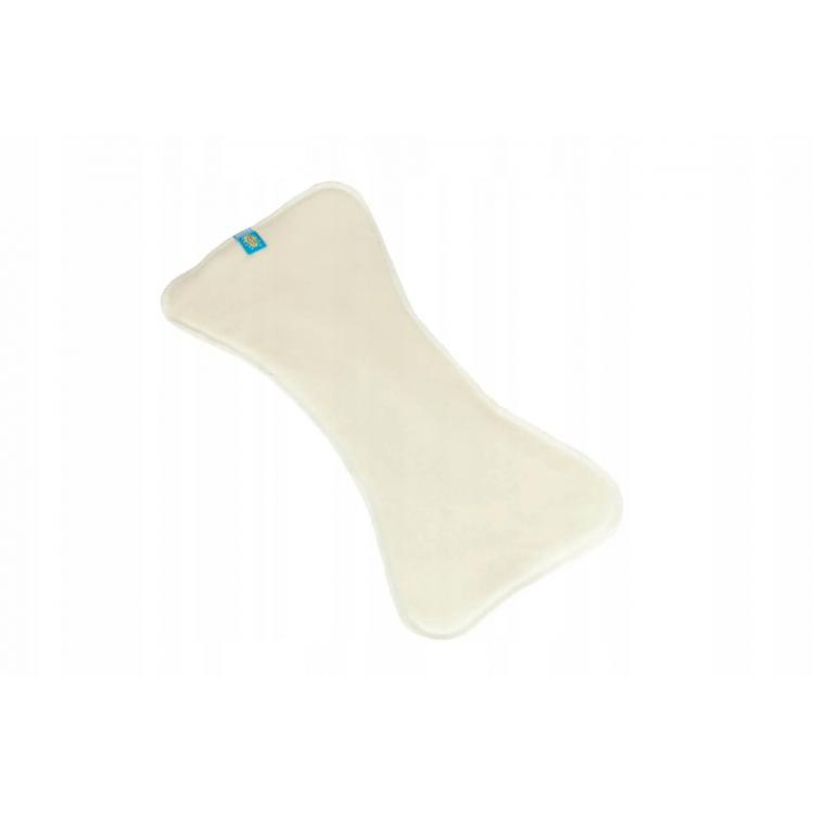 Klepsydrowy kształt wkładu dodatkowo zwiększa jego powierzchnię chłonną dając większą pojemność oraz generuje dodatkową powierzchnię absorpcyjną. Warstwy frotty otula delikatna, naturalna, niebielona bawełna dla zdrowia i komfortu delikatnej skóry dziecka.