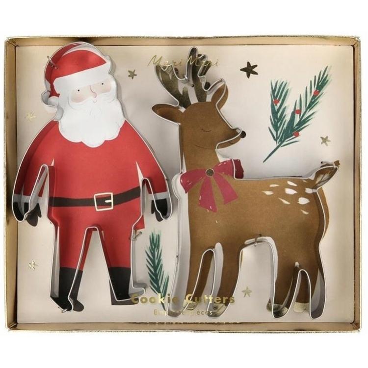 Zestaw dwóch metalowych foremek Meri Meri – Mikołaj i Renifer. Foremki ze stali nierdzewnej w eleganckim pudełku prezentowym. Idealne do świątecznych wypieków i dekoracji.
