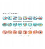 Rozszerz swoją kolekcję opowieści o trzy nowe przygody! Zestaw „W cyrku” zawiera 3 krążki z ilustracjami, które po włożeniu do projektora Moulin Roty wyświetlają barwne slajdy na ścianie lub suficie. Każdy krążek składa się z sekwencji obrazków tworzących krótką historię (np. przyjazd cyrku, panika zwierzątek, ratuj się kto może).