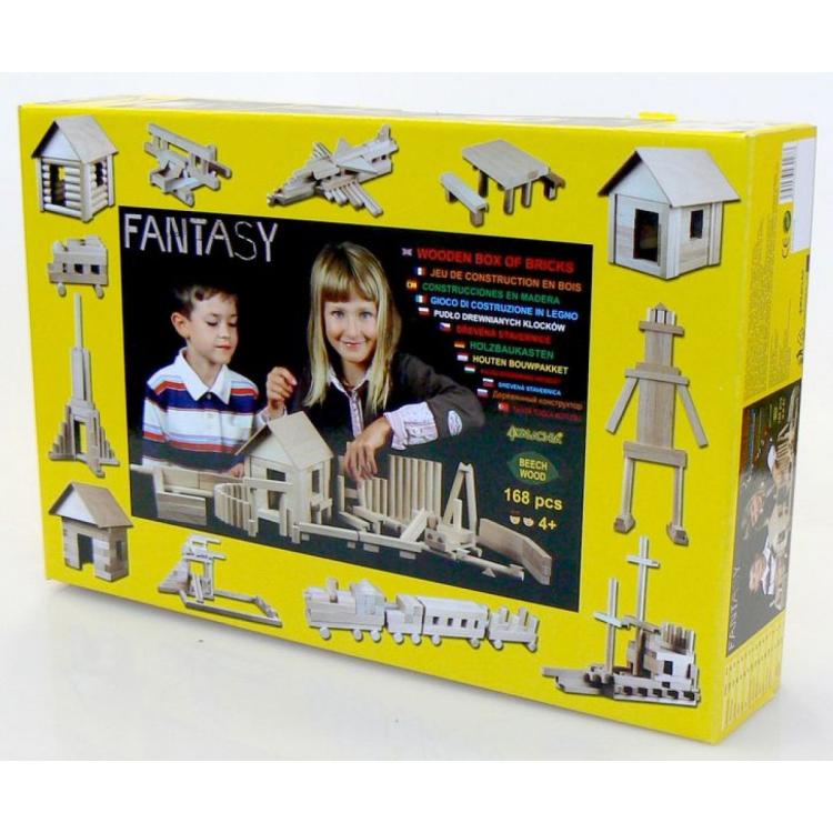 Walachia Fantasy (W-27) to kreatywna drewniana „stavebnica” z bukowych elementów (ok. Ø 15 mm) do budowania wielu konstrukcji według instrukcji lub własnych pomysłów. Zestaw jest dla dzieci od 4 lat.